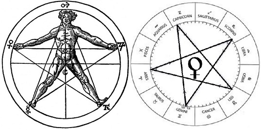 El ciclo sinódico se relaciona con el número cinco, el cual contiene tres componentes, Venus, el Sol y la Tierra. El número cinco toma relevada importancia ya que como sabemos está presente en los seres humanos en los cinco sentidos, los dedos de pies y manos, las cinco partes del cuerpo que separan del tronco, como así también en la naturaleza en general. Si unimos por afuera los cinco puntos de la estrella se obtiene un pentágono. Otro símbolo muy bien conocido. Ambos se han utilizado a través de la historia en temas religiosos, políticos y relacionados al gobierno.